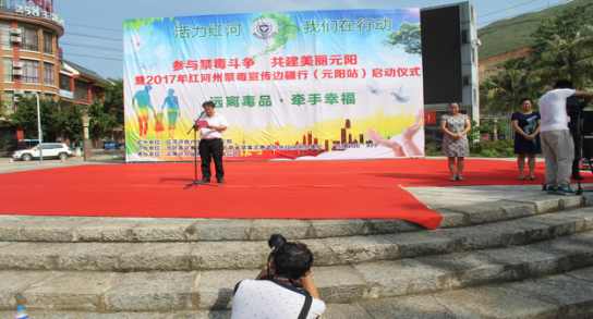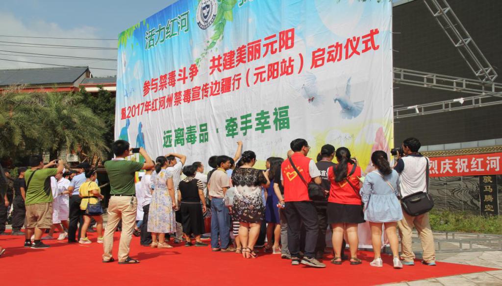由云南省禁毒志愿者协会红河州办事处、元阳县禁毒委员会共同发起的2017年红河州禁毒宣传边疆行元阳站,于8月4日在南沙财富中心广场正式开启。县委常委、县委政法委书记王树林,县人大常委会副主任莫迎春,县政协副主席王俊梅出席启动仪式。